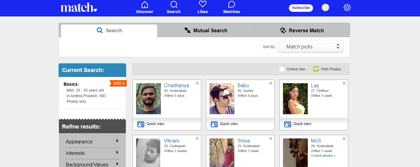However, it allows anyone above 18 years of age to join and find their match for casual dating. The app allows users to add up to 36 pictures to their profile. Additionally, there is a separate platform for singles over 50 years of age – Match’s OurTime.