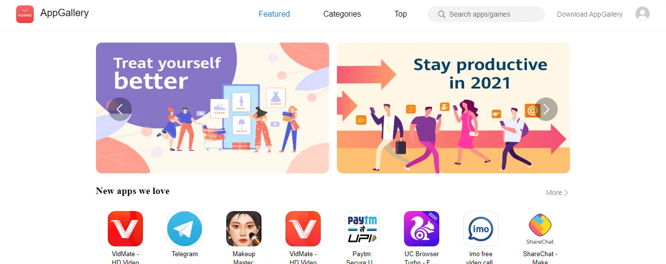 Huawei AppGallery is an official marketplace for Huawei users to download and install various apps. You can find apps from different categories, such as games.