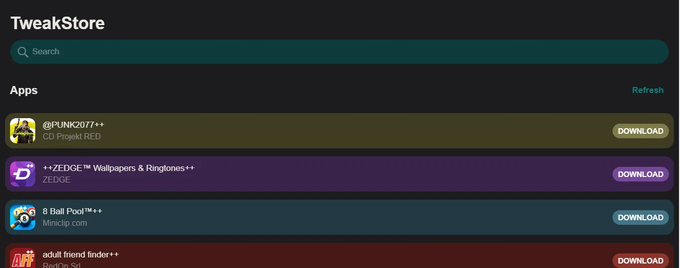 You can download and install modified or customized apps without jailbreaking your device. Tweak Store.me is free and secure, and it has a simple and attractive design.