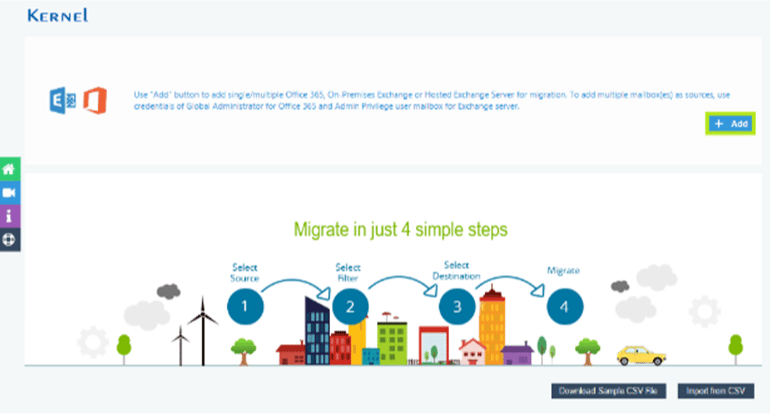 - Open the Office 365 Email Archiving tool, Kernel. To add the Office 365 account to the tool, click the “Add” button on the Welcome Screen.