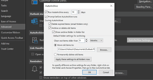 Before we get started, let’s look at the outlook default settings you probably already have. There is a far better method to archive your Outlook email for Office 365.