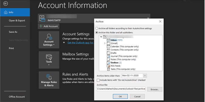 First, you cannot utilize the native Outlook archive function if you have an Exchange server email account and your company uses Microsoft Exchange Server Online Archive.