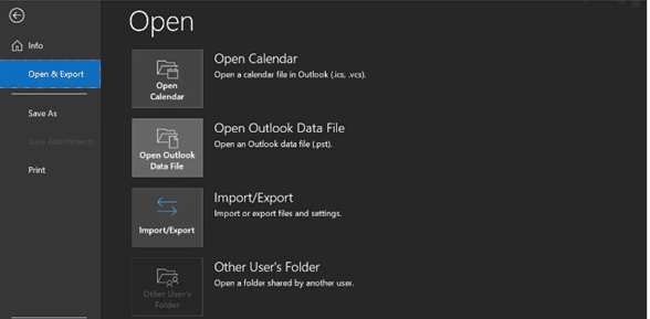 - When importing a PST data file into the software, click Open Outlook Data File in the right pane.