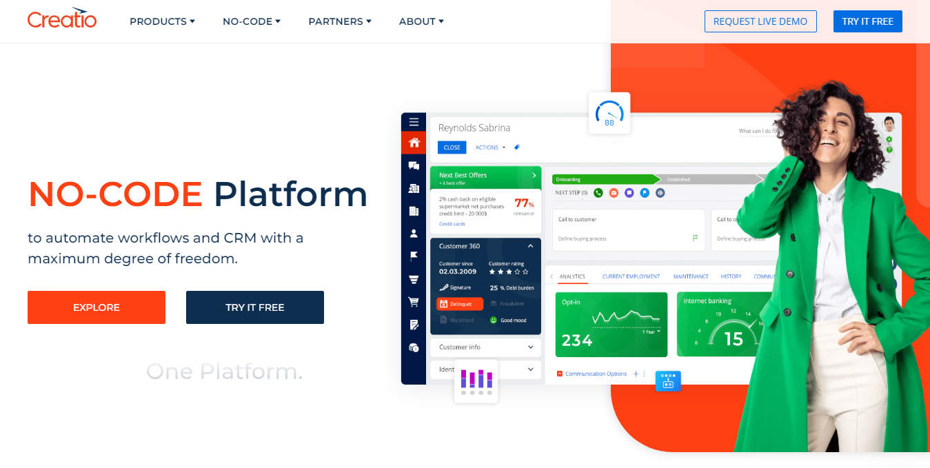 In 2014, Katherine Kostereva established Creatio. As of right now, the firm has agreements with over 700 businesses, created branches in 14 countries, and employs 700 individuals across 7 locations. The low-code tool assists companies in creating products that increase productivity, optimize sales and MKT processes, and improve customer service. Data is correctly saved, client interactions are handled, and activities and procedures are automated with the aid of Creatio. Whether the IT staff is on board or not, Creatio is an excellent platform for creating apps, With Creatio, organizations may combine tools and automated activities to best meet their requirements, giving them more flexibility and scalability. Their two best-known products are Creatio CRM and Studio Creatio.