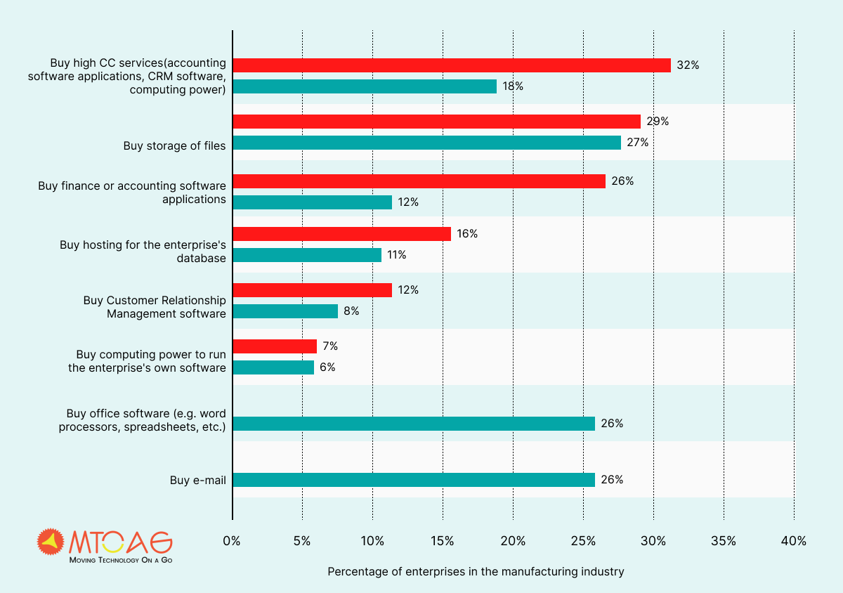 Statistics on the adoption and use of hybrid cloud computing in manufacturing