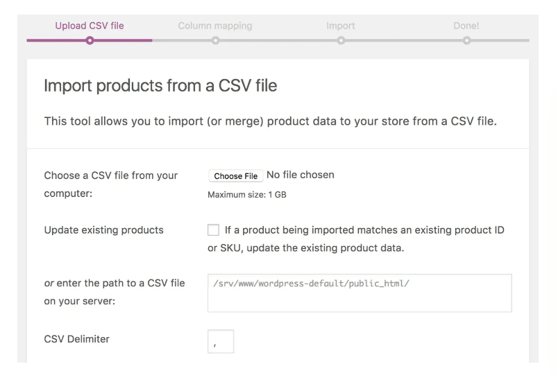 WooCommerce Import CSV