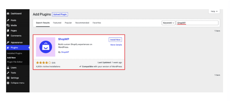We’ll first demonstrate how to link Shopify with WordPress using a third-party plugin. The shop is the plugin’s name (previously called Shopify WP).