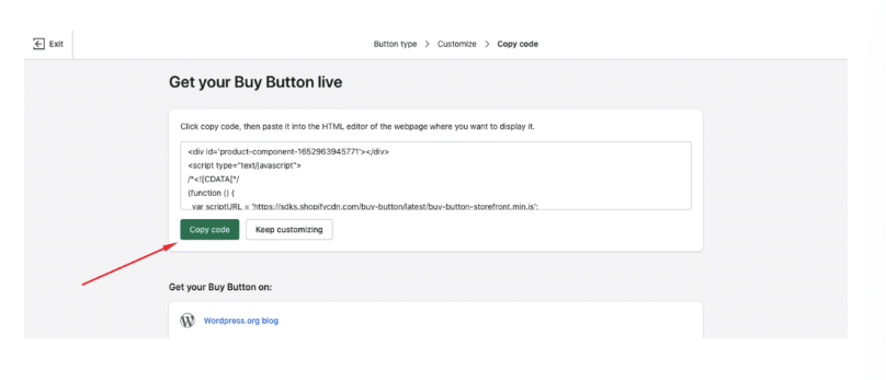 Step 4: Include a Buy button from Shopify on your WordPress website.