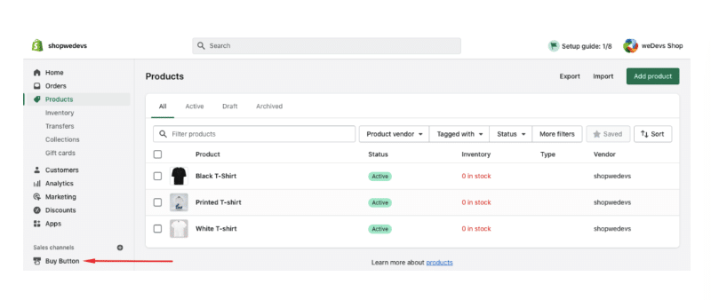 - On Shopify, add a buy button.