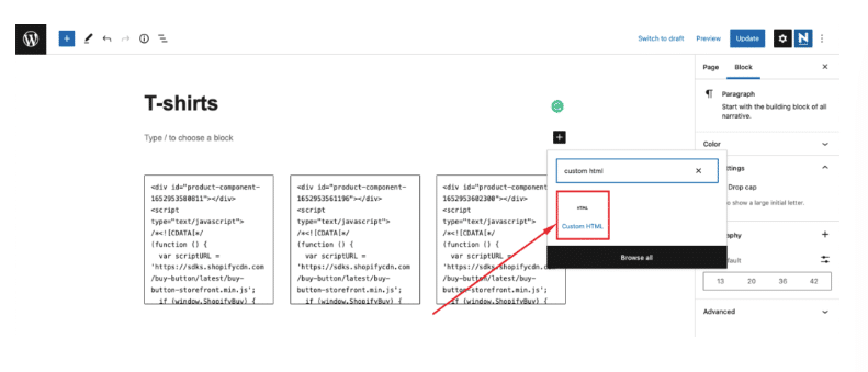 Step 4: Integrate a Buy Button from Shopify with Your WordPress Website