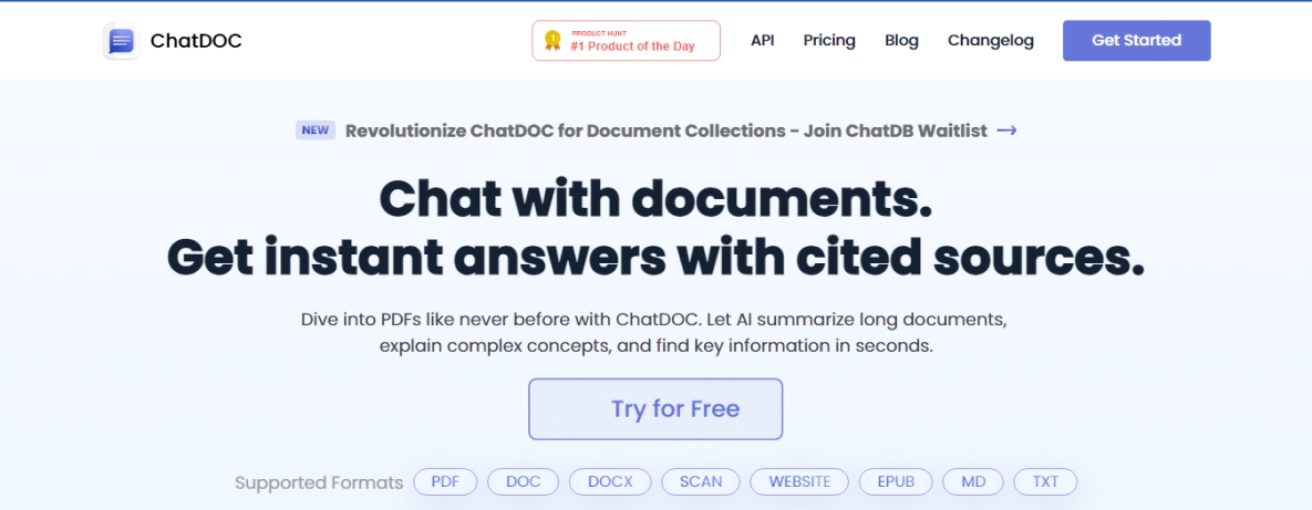 ChatDOC is online and free to use right now. Free users can process 20 files per day without any cost. You can upload research papers, professional books, manuals, and any other kind of documents. With it, you can read faster and learn better.