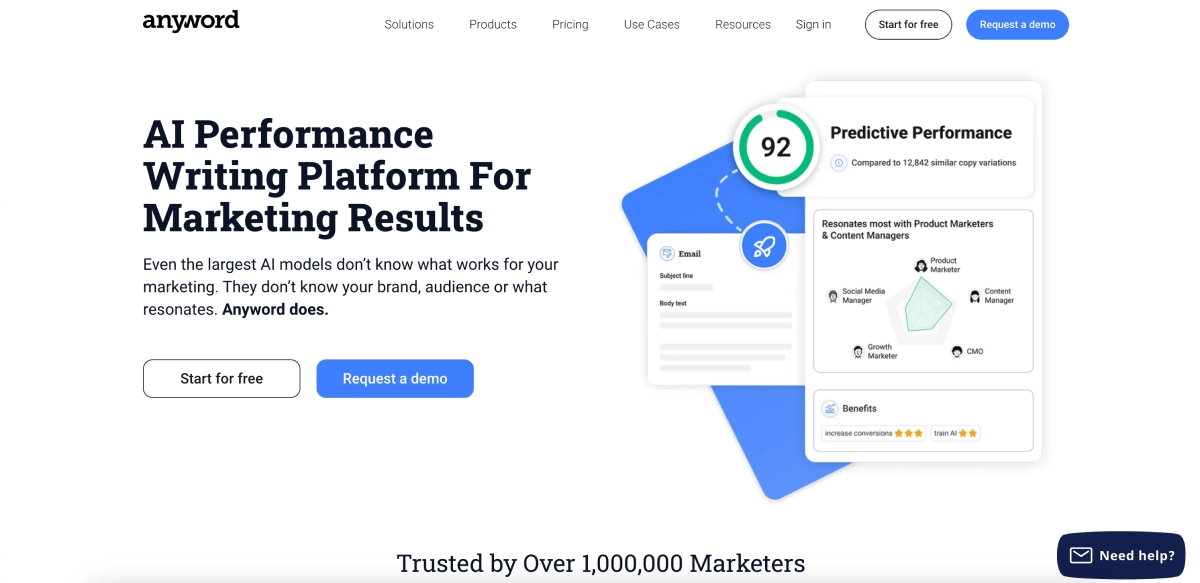 Anyword is a remarkable AI content creation tool that delivers high-quality and relevant content suggestions for your needs. It has a powerful AI chat that can understand natural language, user intent, and context with ease.