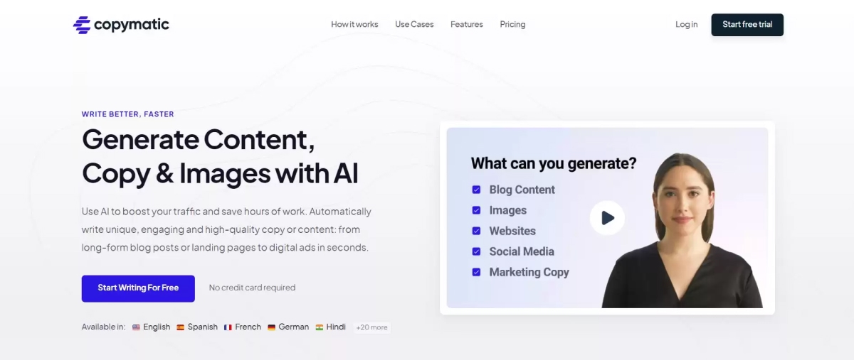 Copymatic is a Quillbot alternative free that is designed to help you craft engaging and error-free content in minutes. It uses advanced natural language processing and machine learning techniques to generate original and creative content.