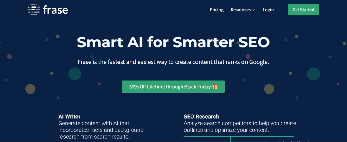 Frase is a comprehensive tool that combines SEO research and AI-powered content creation. It is a smart tool that can scan the internet for relevant information and produce a creative brief in seconds. It also has a user-friendly UI/UX that gives writers a complete overview of their research topic.