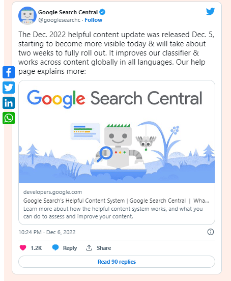 The Google December 2022 Update for Helpful Content, which we anticipate to be the year’s last significant algorithm update, has already begun rolling out on Google. It started on 5th December and will take two weeks to complete entirely.