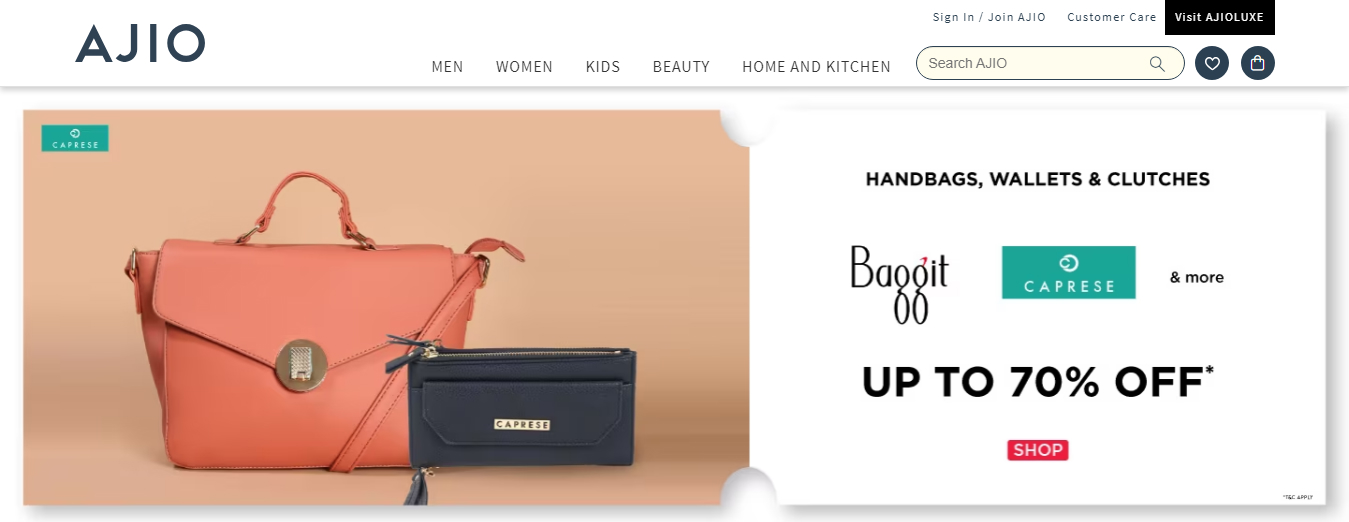 Ajio is a newly established online fashion store in India that sells fashionable and distinctive shoes, accessories, and clothing. It is renowned for its well-chosen assortments and constantly refreshed stock.