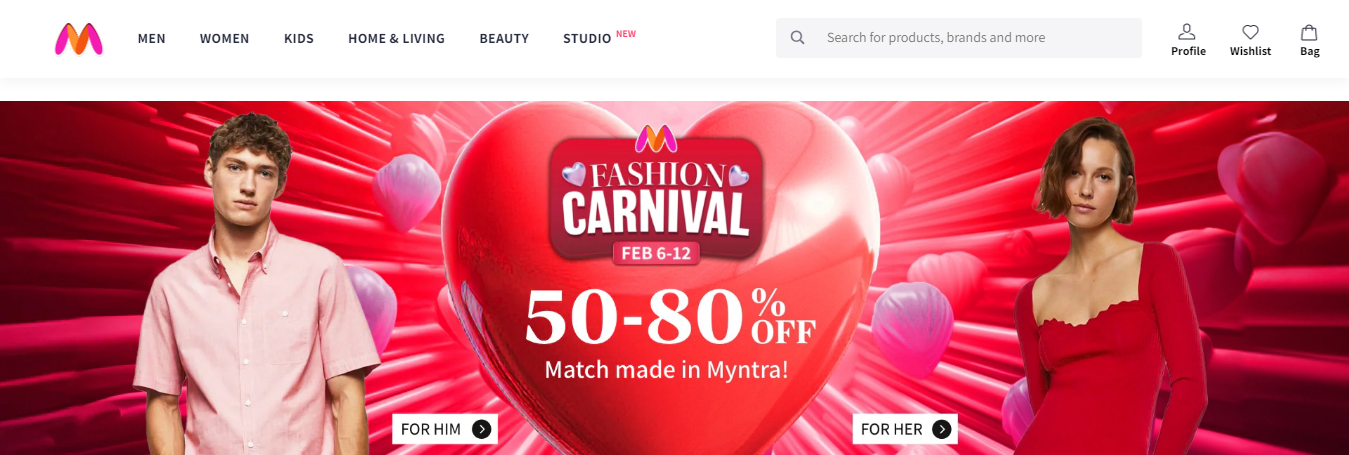 Myntra is a well-known e-commerce site in India that offers an extensive assortment of fashion items, such as apparel, accessories, and shoes. It often has deals and discounts and provides a large selection of brands.