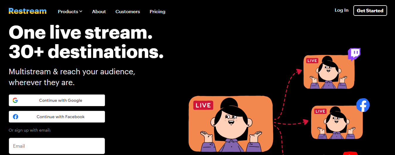 Restream offers additional choices for multistreaming locations and the ability to invite visitors to your stream, even if its fee is comparable to StreamYard’s.