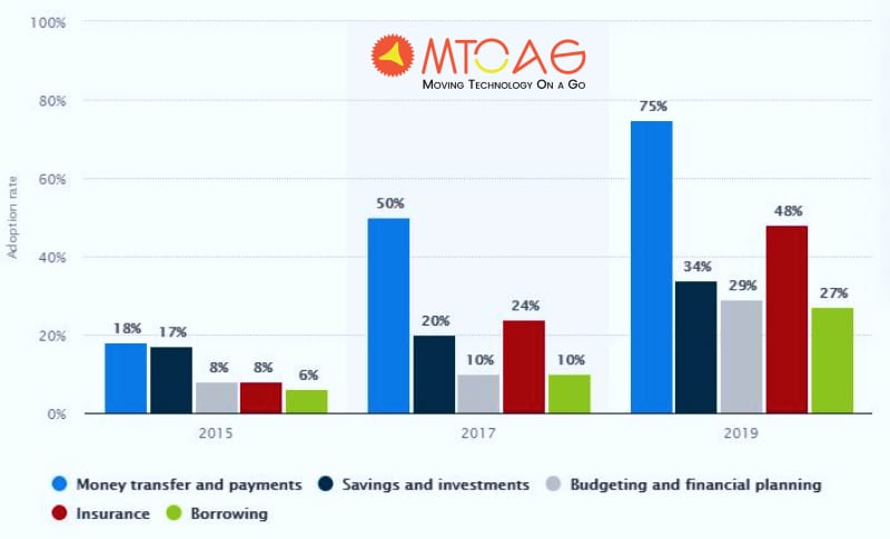 The list of fintech examples would be lacking without including cryptocurrency and blockchain. To reduce fraud or defective transactions and safeguard financial data on blockchain technology, buying or selling bitcoins has become the norm.