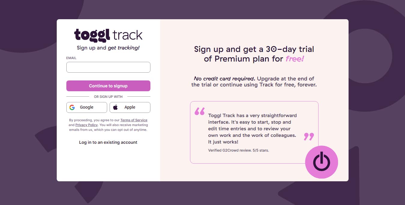 To begin using this time-tracking tool for free: