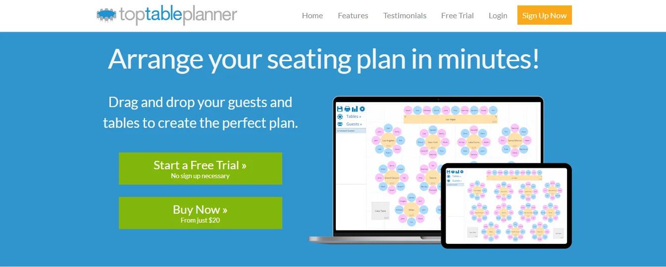 With Top Table Planner, you can easily create a seating plan for your event guests. You can move tables and guests around with a simple drag-and-drop action. You can experiment with different layouts until you find the one that suits your event best.