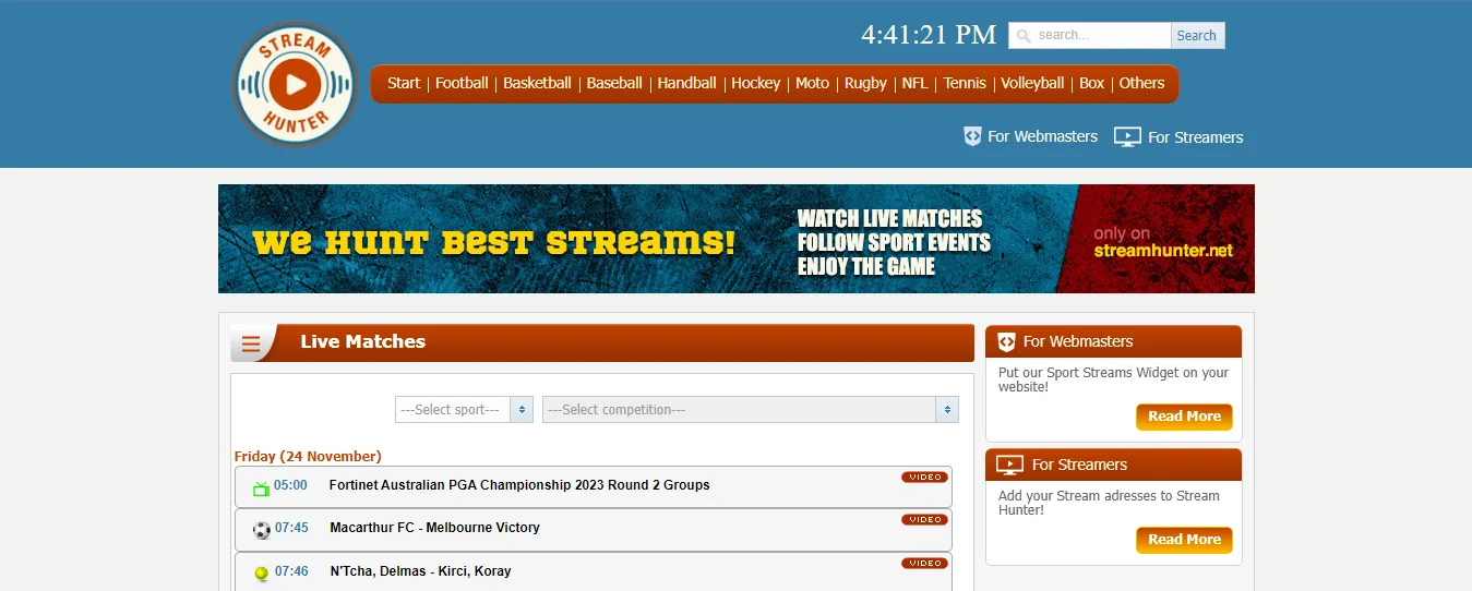 StreamHunter has a very user-friendly homepage, where you can easily find and watch your preferred sport with just a few clicks.