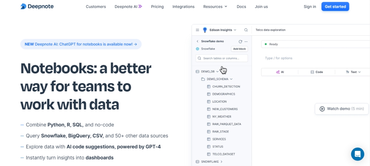 Deepnote is a platform for data teams to work together. You can collaborate and share your work with ease using this playground. The app allows you to integrate various tools and frameworks.