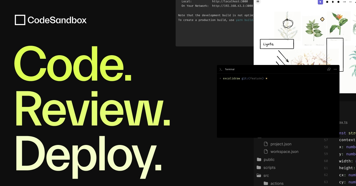 - Instant Online IDE: You can start coding in seconds without installing anything on your local machine. CodeSandbox provides you with a fully-featured online editor, a live preview, a terminal, and a file explorer.