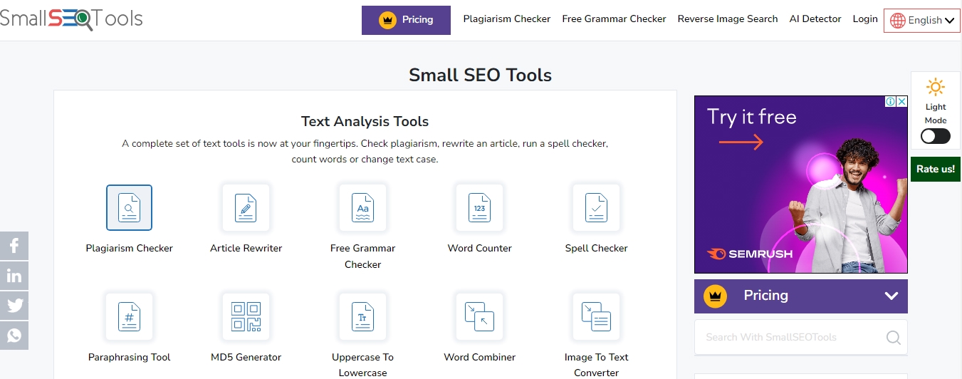 With features like a sentence rephrase, paraphrase tool, and article rewriter, Small SEO Tools is an AI-based content creation tool. The program includes capabilities for picture editing, keyword research, and website administration in addition to writing tools. It’s an excellent option for small companies and independent content producers since many of its features are completely free.