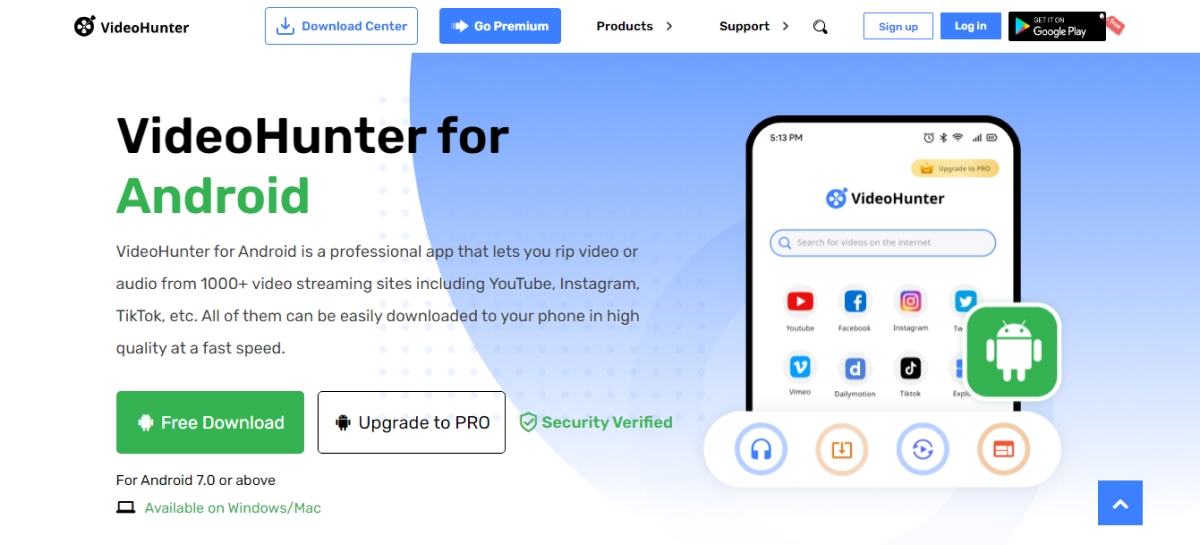 VideoHunter for Android is the best YT1S alternative that can download videos and music from YouTube and other sites for free.